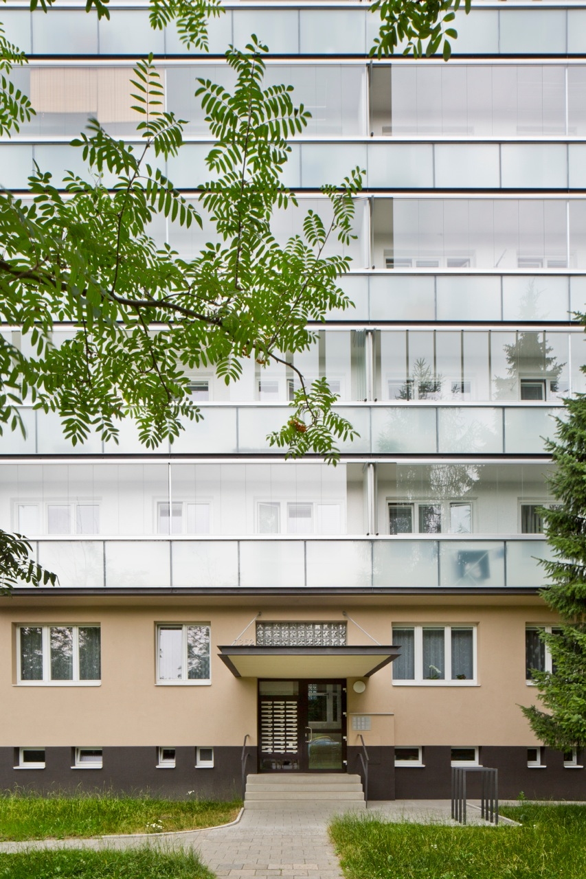 Kompletní revitalizace obvodového pláště panelového domu v centru Rožnova pod Radhoštěm. Nové posuvné zasklení lodžií. Nový vstupní prostor do domu. Cenový rámec realizace byl dodržen dle podmínek investora, vzhled a kvalita venkovního pláště nesrovnatelná s původním „panelákovým standardem“.
