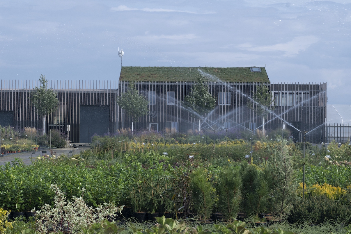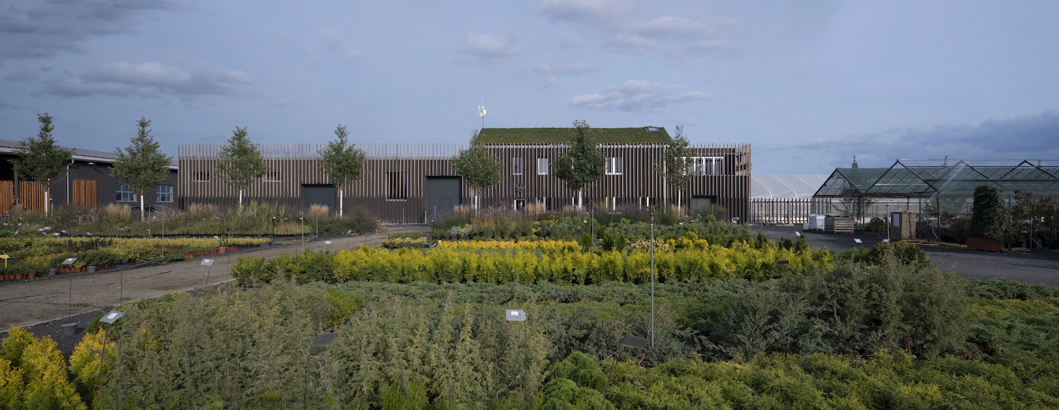 Dva bratři, kteří pokračují v rodinné zahradnické firmě, se po letech rozhodli kompletně zrenovovat a dostavět její sídlo. Původní nevyhovující prostory firmy byly kompletně zrenovovány včetně zázemí pro strojní techniku a na terase v administrativní části byla přistavěna formou dřevostavby školící a konferenční místnost. Celý objekt je „zabalen“ do venkovní dřevěné treláže, díky níž je budova kompaktní bez viditelného rozdílu mezi původním a nově přistavěným. Protože sídlo firmy leží v záplavovém území řeky Labe, je venkovní treláž navržená tak, že její spodní černá část se dá v případě hrozící povodně demontovat. Také z toho důvodu bylo do přízemí firmy umístěno zázemí pro zaměstnance a prodej rostlin. Administrativní část je pak umístěná v patře.