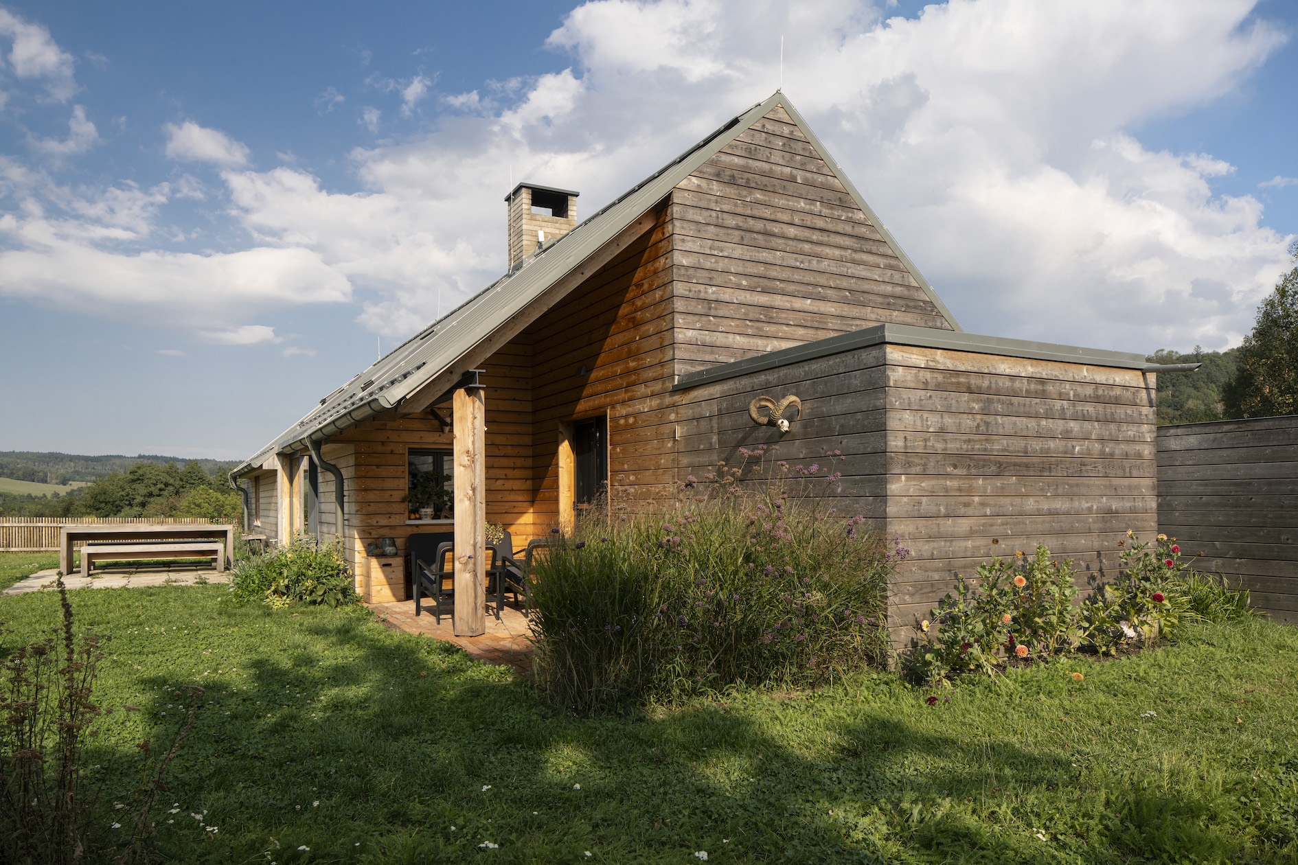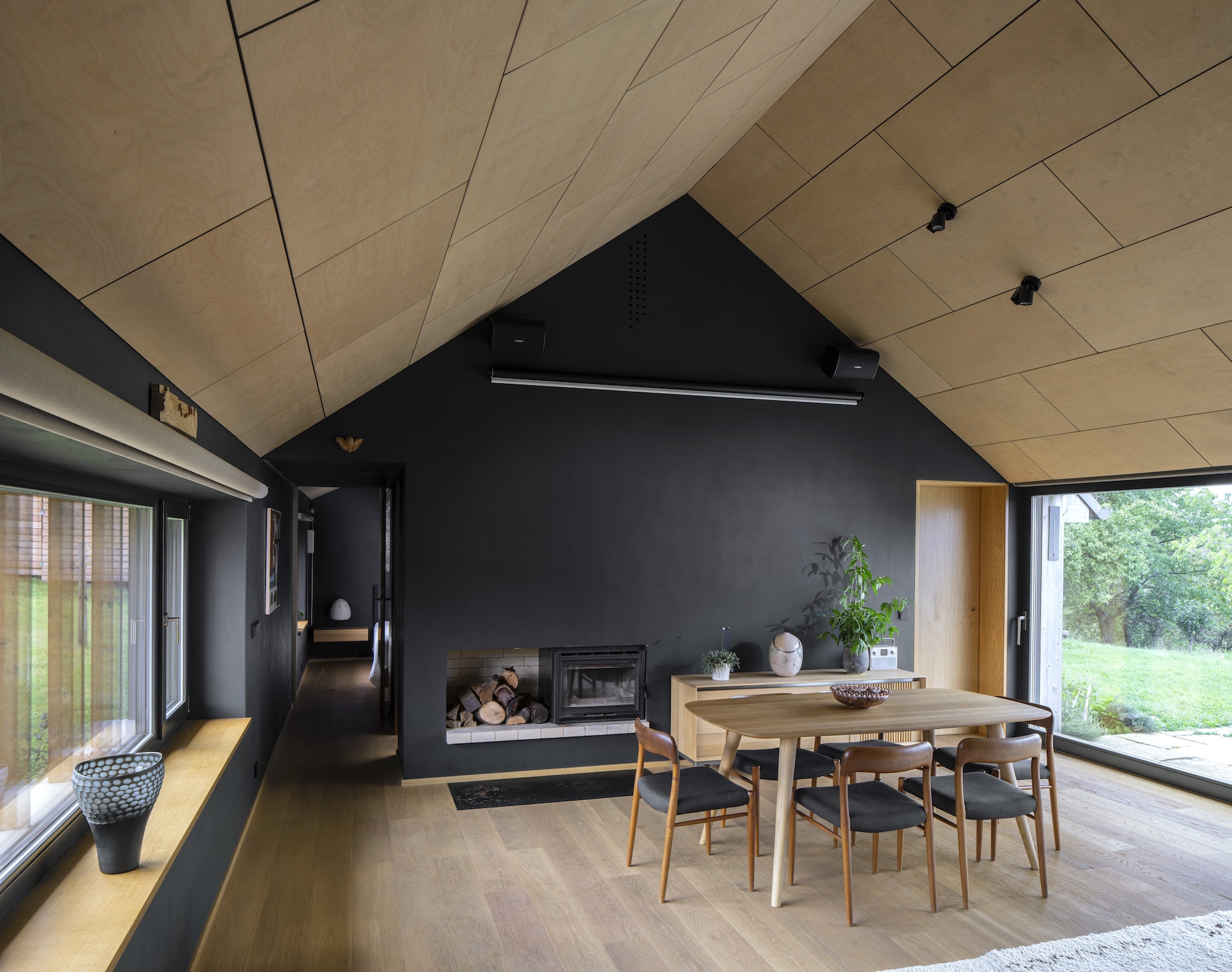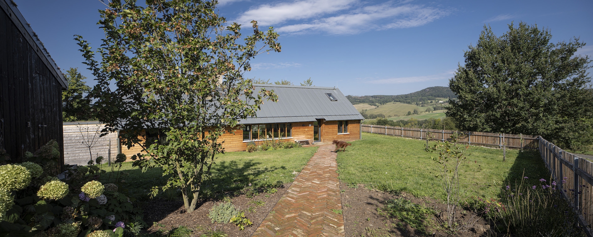 Současný, ale v tradičním duchu navržený dům na okraji malé obce v chráněné krajině Českého středohoří. Původně měl být víkendovým bydlením, ale postupně převážil záměr trvalého bydlení v klidu, na samotě a s výhledem do nádherné krajiny plné sopečných vrchů. Rodina s dospělými dětmi, vracejícími se domů jen občas, jejichž místo důstojně zaujala fenka irského setra. Rodina spjatá se zahradou.