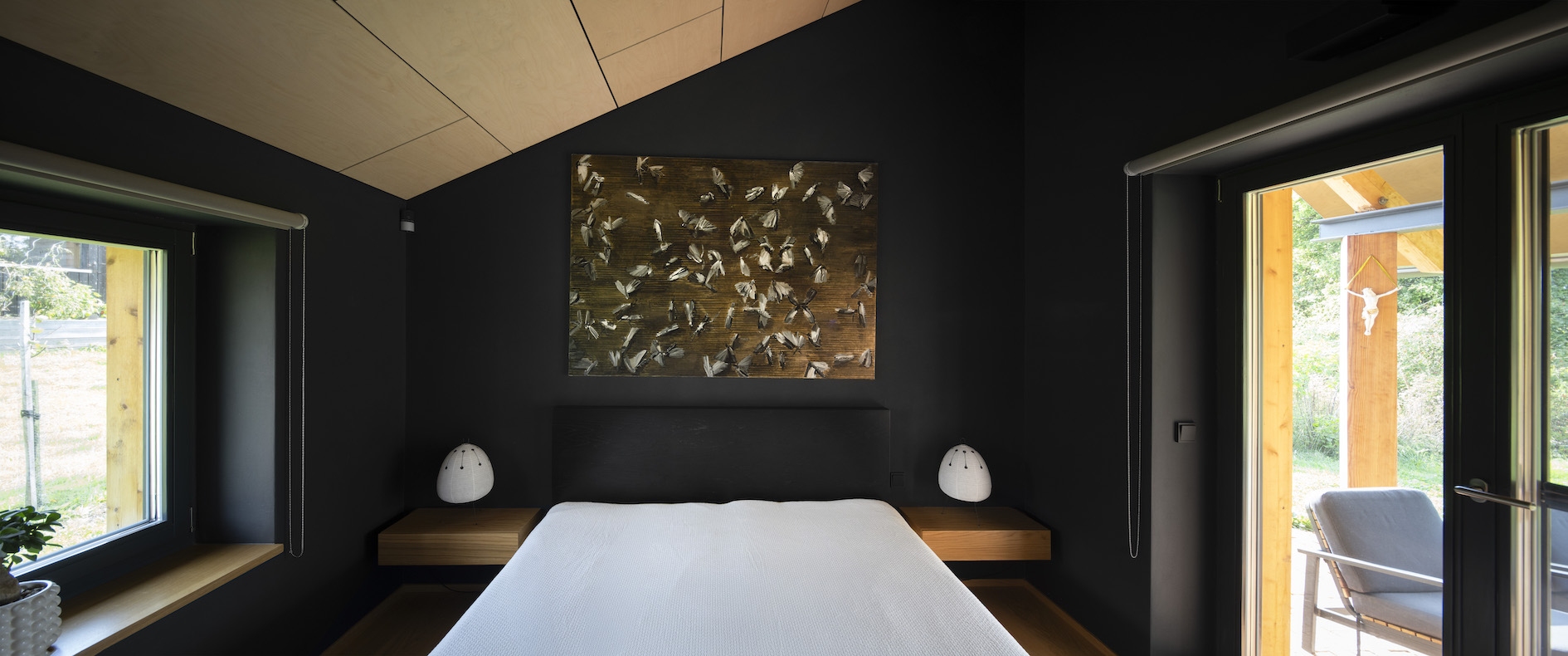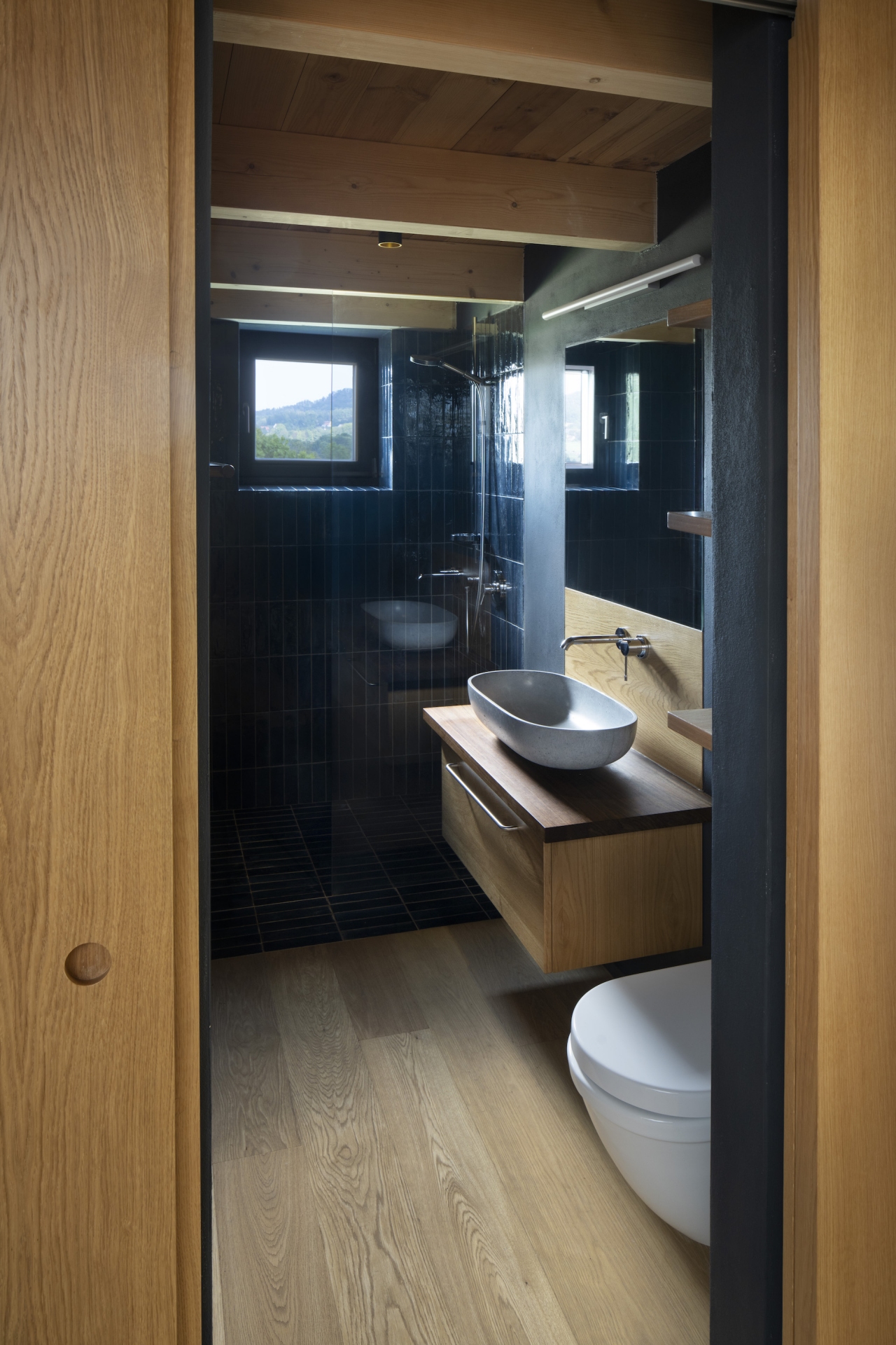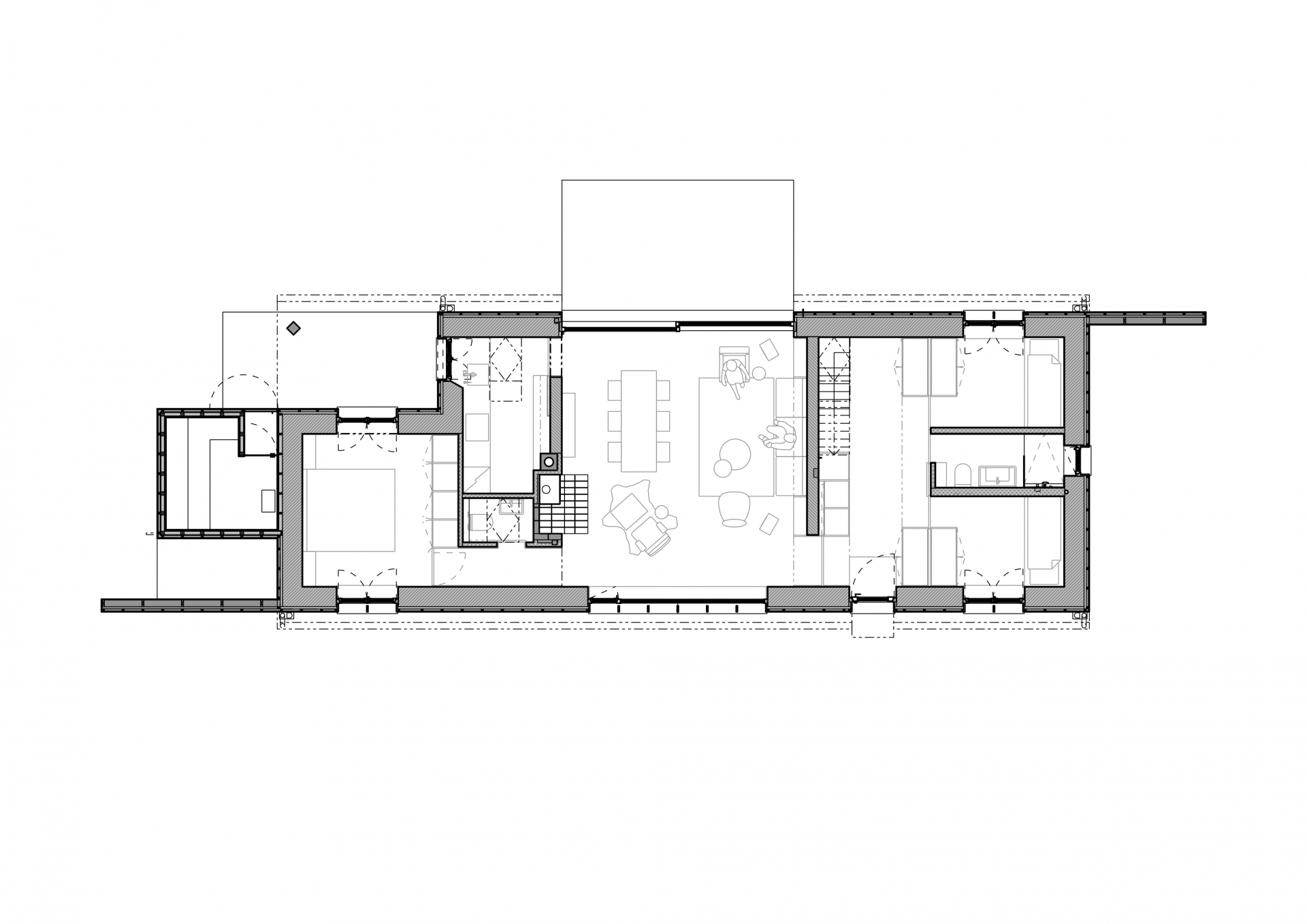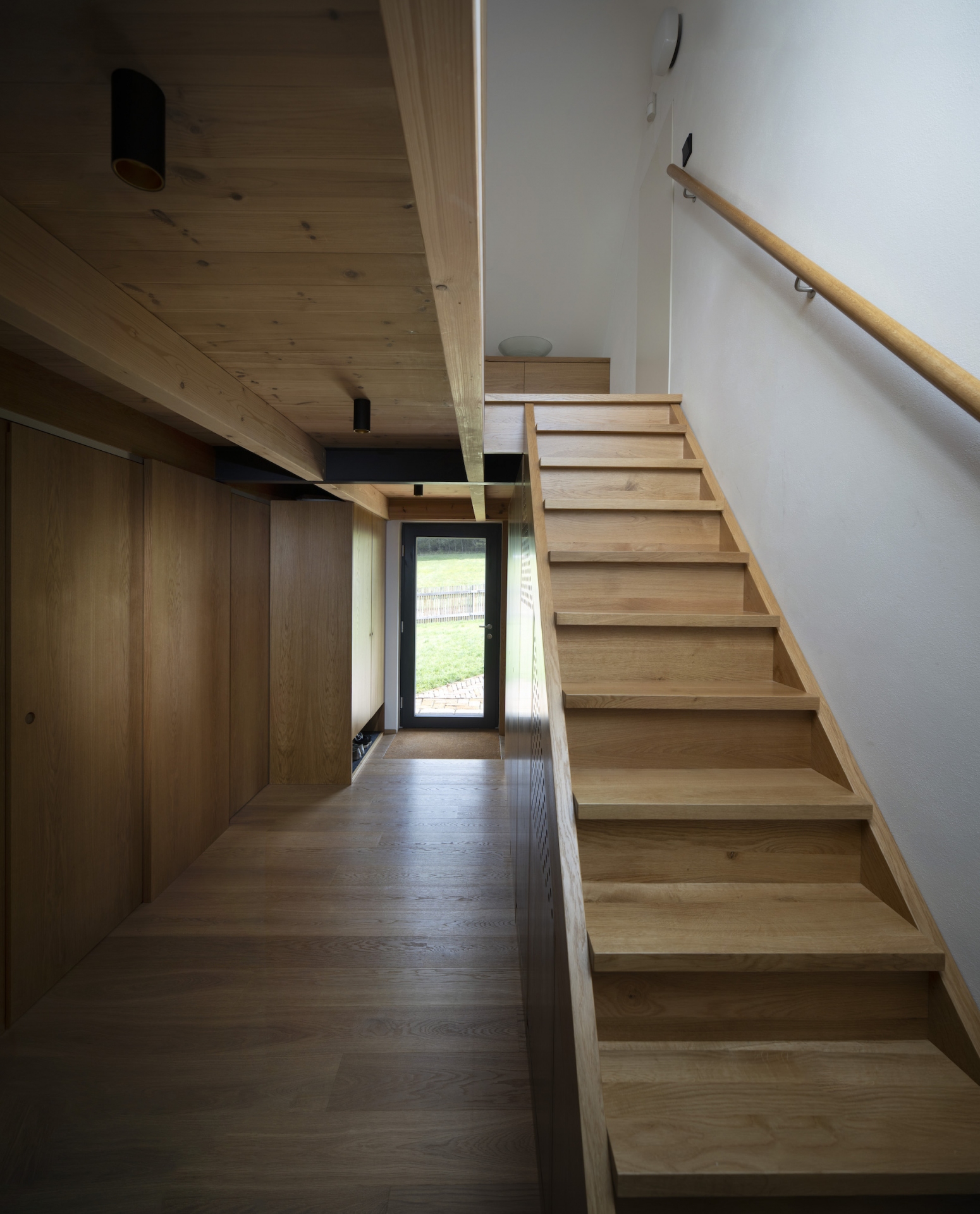 Současný, ale v tradičním duchu navržený dům na okraji malé obce v chráněné krajině Českého středohoří. Původně měl být víkendovým bydlením, ale postupně převážil záměr trvalého bydlení v klidu, na samotě a s výhledem do nádherné krajiny plné sopečných vrchů. Rodina s dospělými dětmi, vracejícími se domů jen občas, jejichž místo důstojně zaujala fenka irského setra. Rodina spjatá se zahradou.